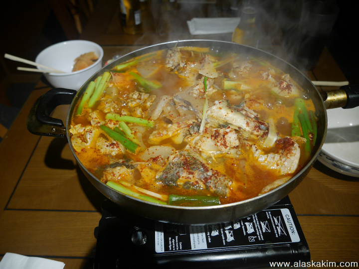 짠! 매운탕을 아주 얼큰하게 끓였습니다.
