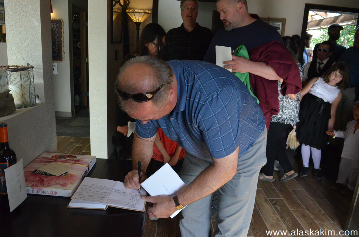 하객들이 방명록에 서명을 하고 입장을 합니다.