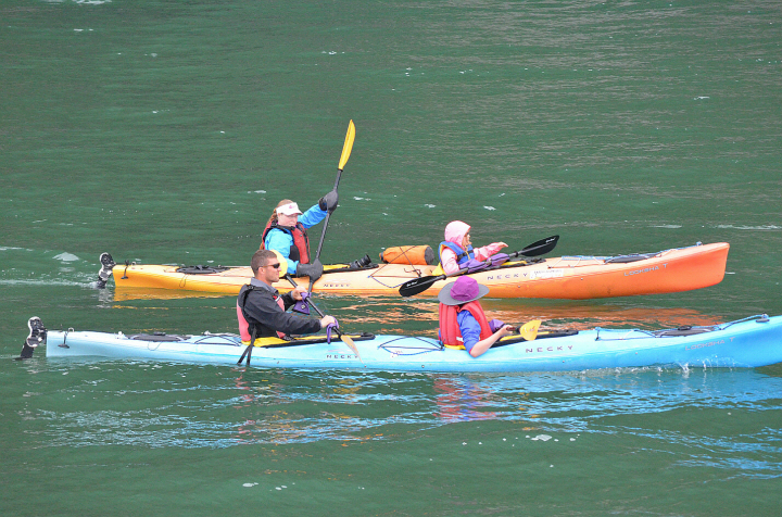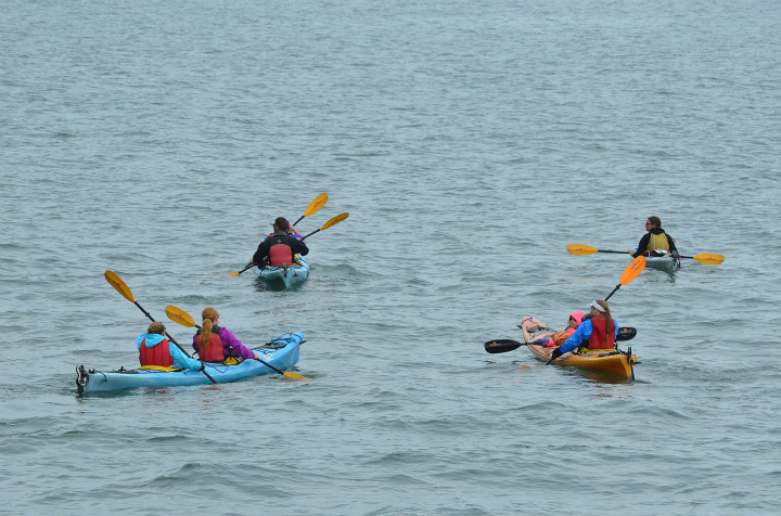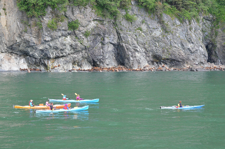 바다사자 앞을 유유히 지나가는 카약팀들입니다.