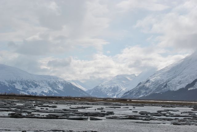아직도 갯벌은 얼어붙어 있고, 저 웅장한 설산은