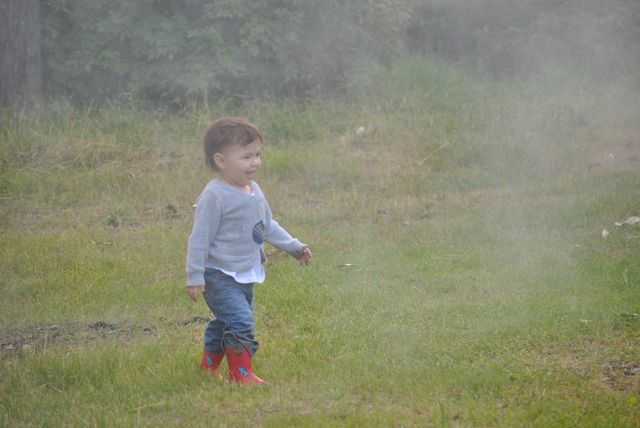 연기를 손으로 잡으려고 , 장난을 하네요.