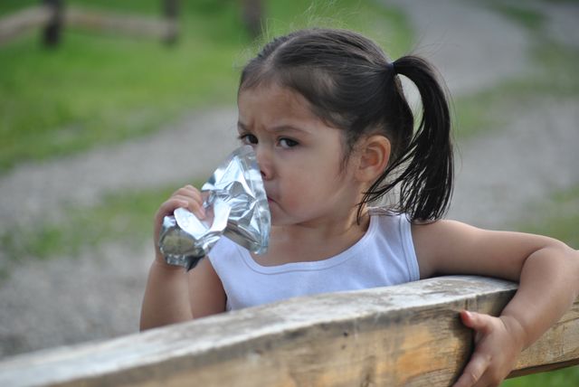 음료수를 마시는 에스키모 원주민 아이.