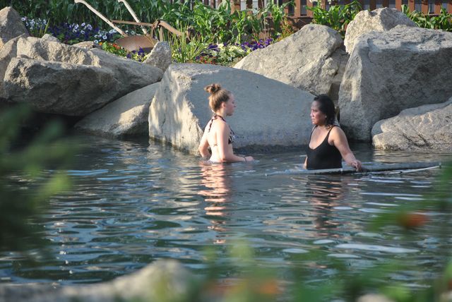 초가을 태양 아래 한가롭게 온천욕을 즐기는 이들.
