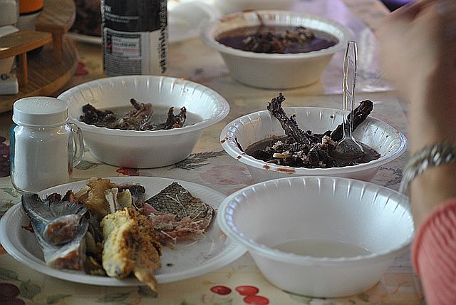 전통 음식을 나누어 먹습니다.
