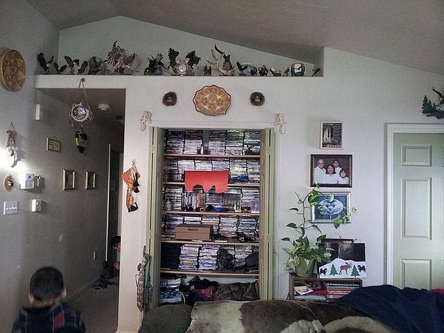 가족사진과 각종 장식품들.