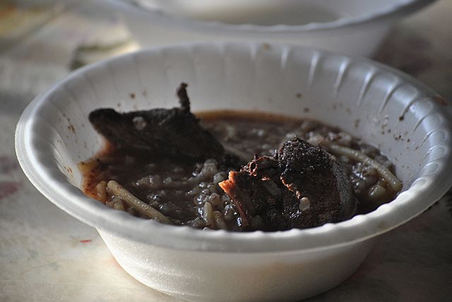 물개고기 수프인데 밥도 말아서 먹습니다.