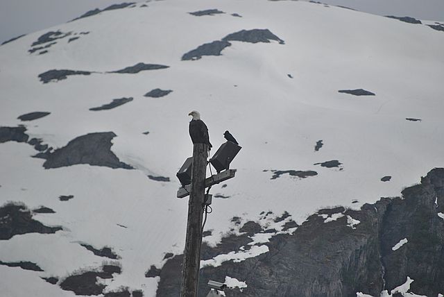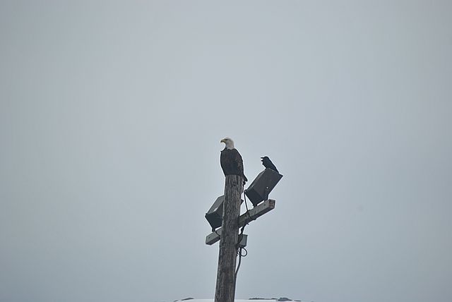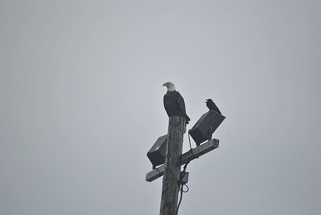전신주 위에 흰머리 독수리가 고고하게 앉아 있었습니다.