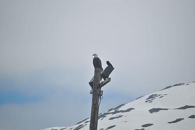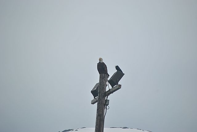 전신주 위에 흰머리 독수리가 고고하게 앉아 있었습니다.