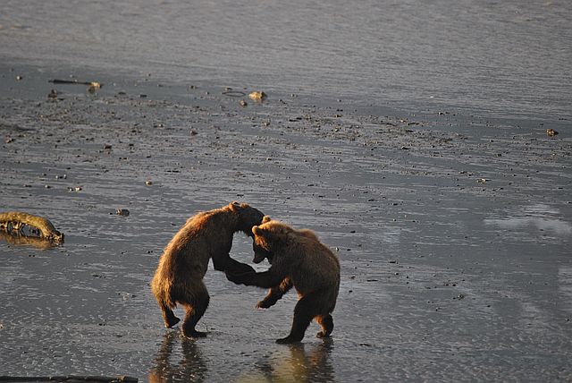앞서간 형 곰이 한 마리를 잡았습니다.