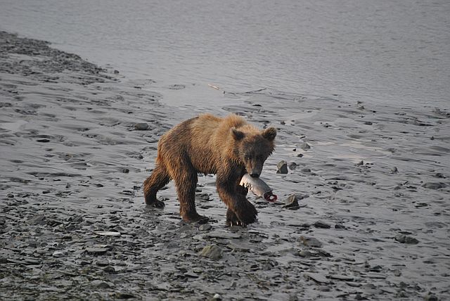 사냥이 아니라, 여기저기 널려 있는 연어를