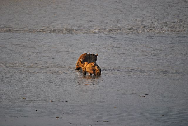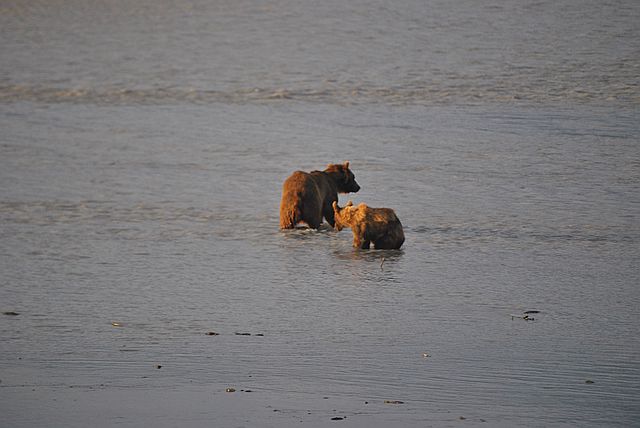엄마곰이 바닷물 속으로 들어가자,