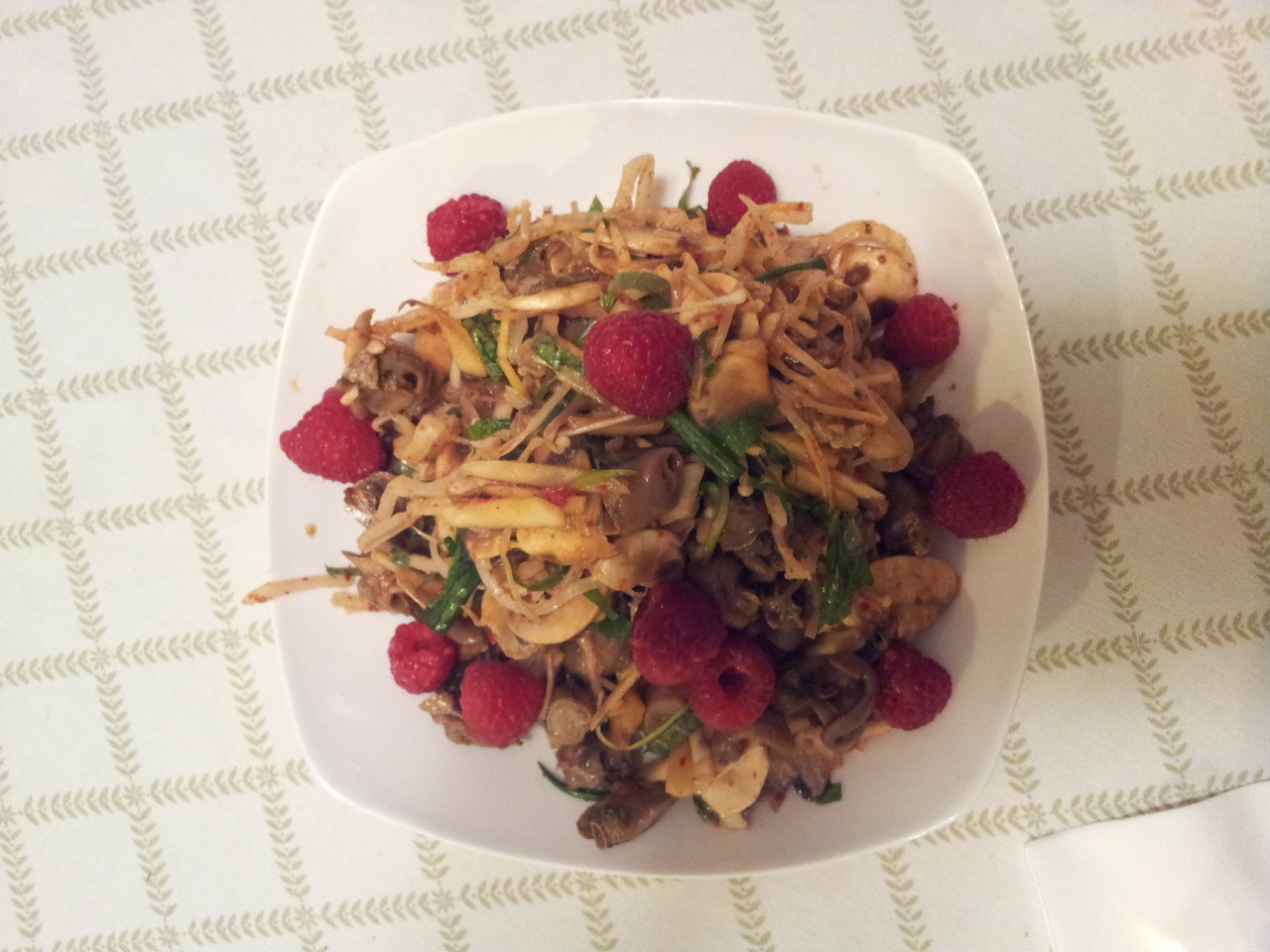 골뱅이, 사과, 깻잎, 느타리버섯, 팽이버섯,