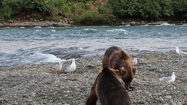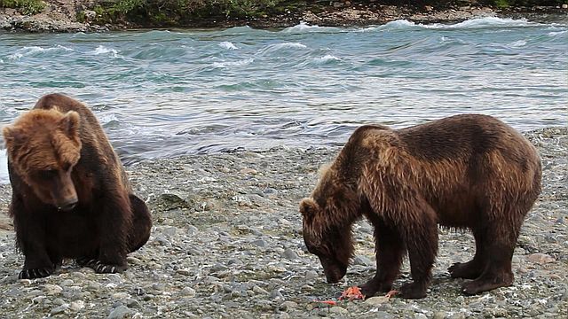 Brown bear들이 연어를 사냥하는 모습은 TV 나