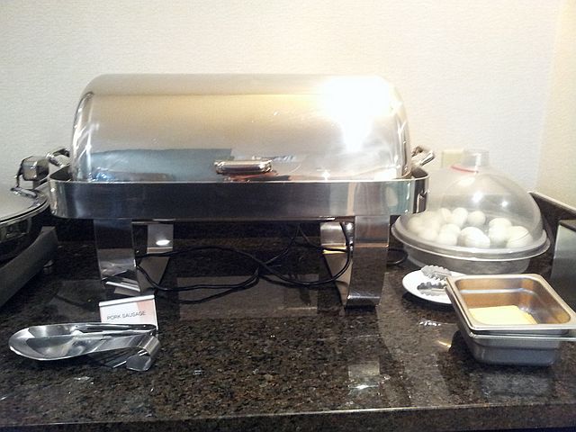 우측 냄비에는 치즈 햄버거가 가득 들어 있습니다.