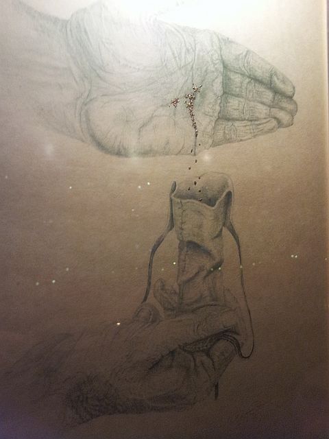 연필로 그린 스케치인데, 저 금가루는 진짜 골드입니다.