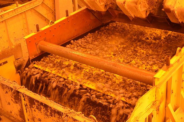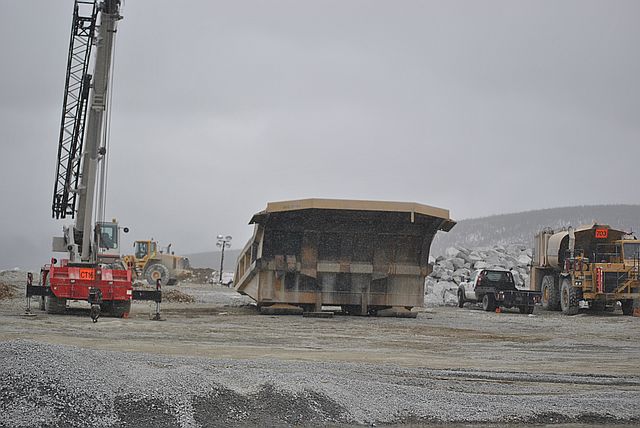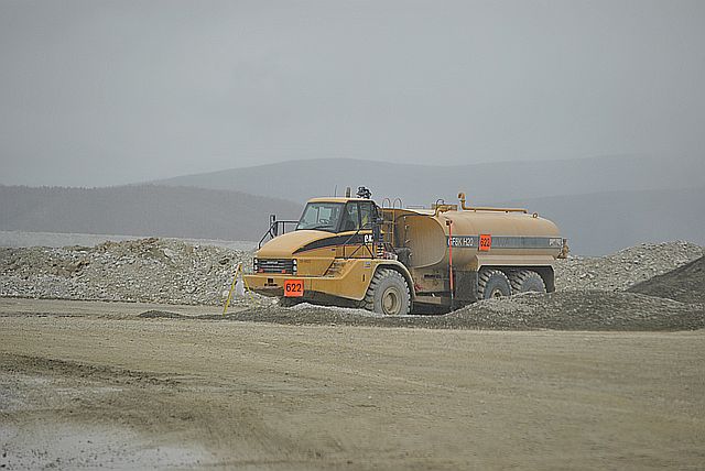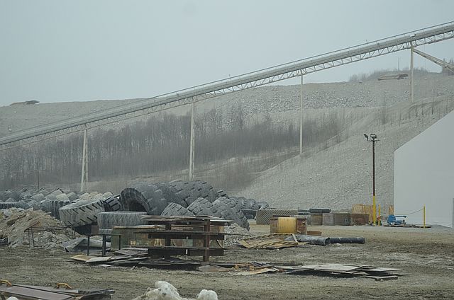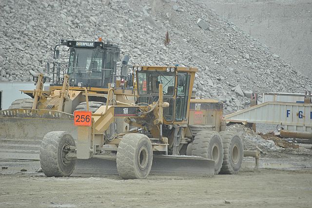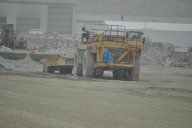 지금 막 20톤이 넘는 트럭이 바위를 싣고 와서 , 분쇄기에 넣고 있는 장면입니다.