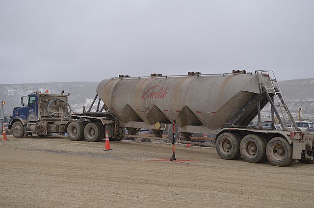 많은 트럭들이 분주하게 쉬지 않고, 돌을 실어 나릅니다.