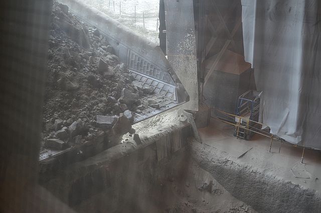 여기는 자동으로 큰 바위를 트럭으로 실어 날아오면, 자동으로 분쇄하는 곳입니다.