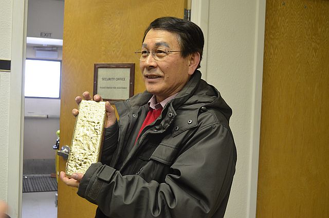 오성교 영사님이 금괴를 들고 기념사진을 찍고 계시네요.