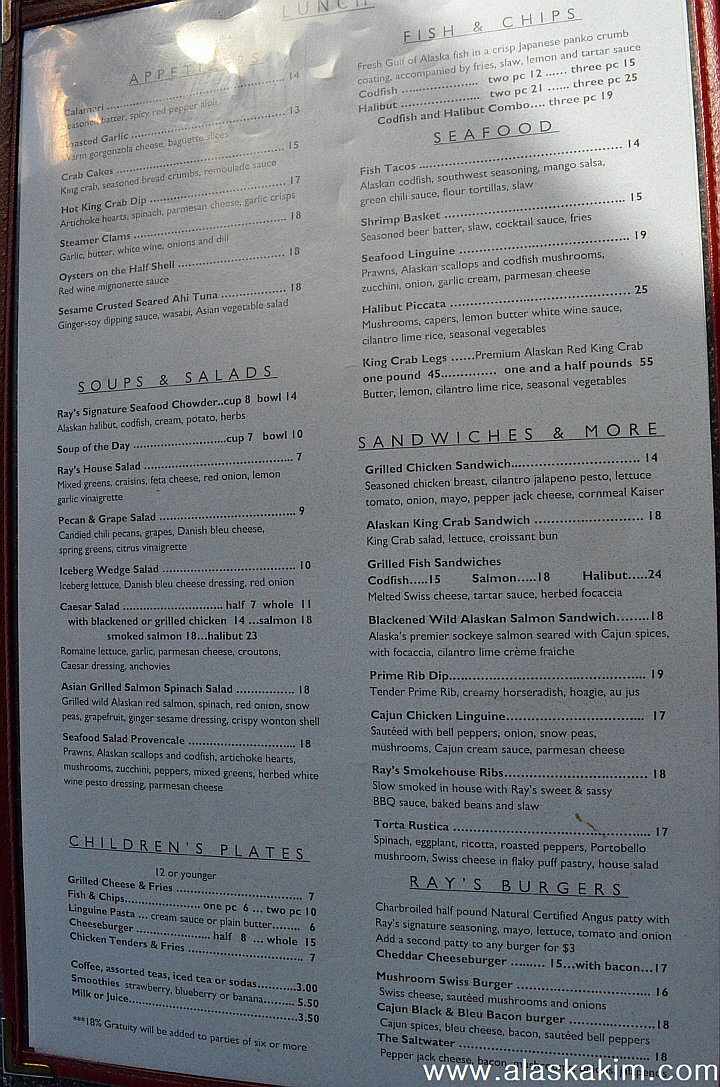Seward 부둣가에 있는 Ray, s라는 수산물 전문 레스토랑입니다.