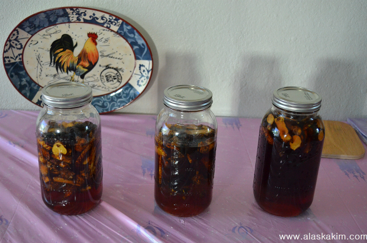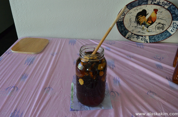 이번에는 술과 상황버섯, 꿀을 같이 넣었습니다.