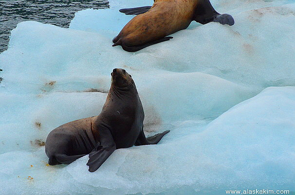또 다른 크나큰 유빙 위에 두 마리의 해달이 밀어를