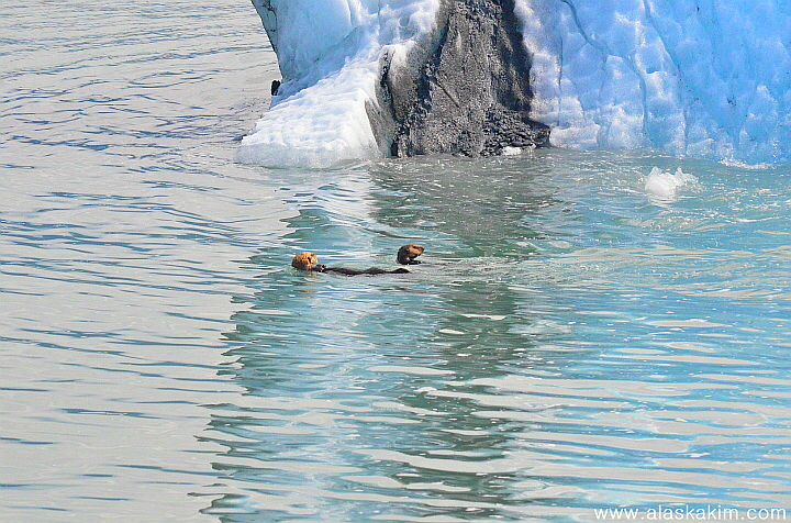 또 다른 크나큰 유빙 위에 두 마리의 해달이 밀어를