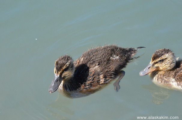 1장은 소가족의 청둥오리 모습이고 2장은 청둥오리