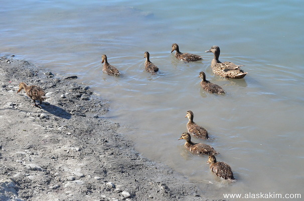줄 맞춰 다른 낚시꾼한테 가는 청둥오리 가족