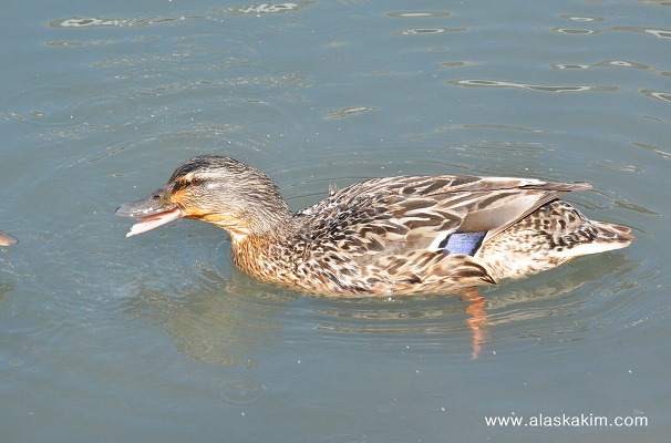 미끼를 흘리면 잽싸게 청둥오리들이 몰려와