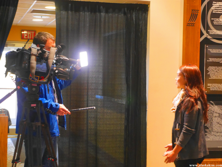 방송국에서 중계를 했는데 , 미디어 담당자와 인터뷰를 하네요.
