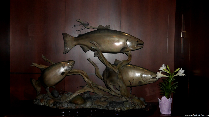 싱싱한 연어 조각상입니다.