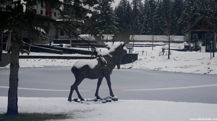 늠름한 수놈 무스가 스키장을 지키고 있습니다.