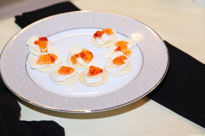 디저트로 나온 연어알 치즈 크래커입니다.