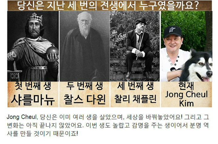 전생에 찰리 채플린이었다고 하네요..ㅎㅎ