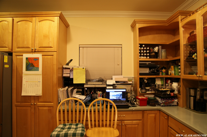 부엌 한편에 이렇게 미니 사무실을 두는 게 아주 좋습니다.