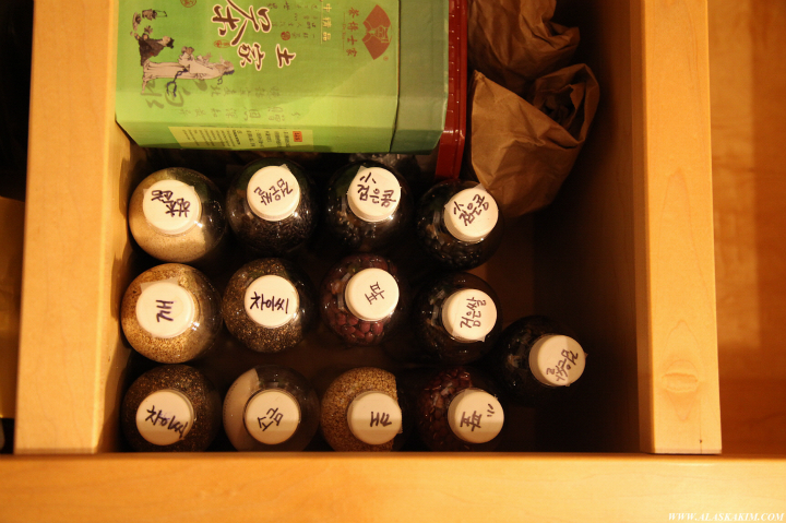 다양한 향신료와 조미료를 병에 담아 저렇게 진열을 해놓아