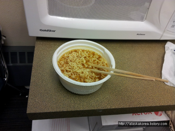 때로는 이렇게 컵라면으로 한 끼를 무사히 (?) 때우기도 합니다.