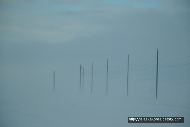눈보라가 워낙 거세다 보니, 길 자체가 안 보여