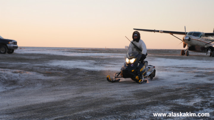 비행기가 도착하자 , 공항에는 마중 나온 스노 머쉰들이 모여듭니다.