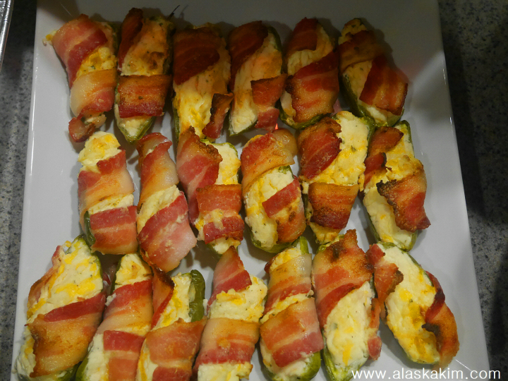 할라피노에 치즈를 넣고 베이컨으로 이쁘게 포장해서 오븐에 구운 거랍니다.