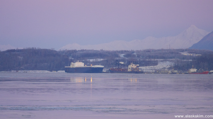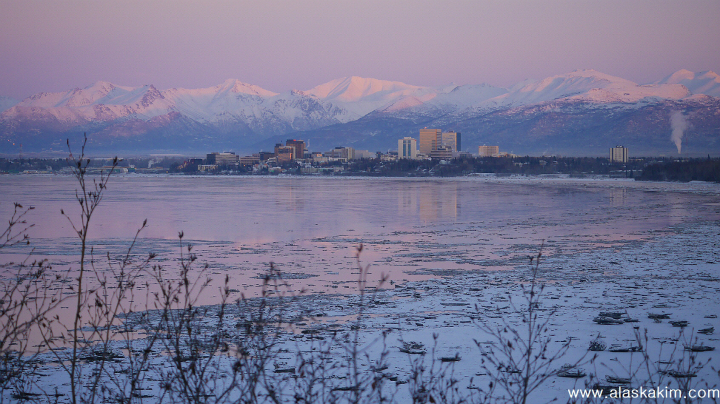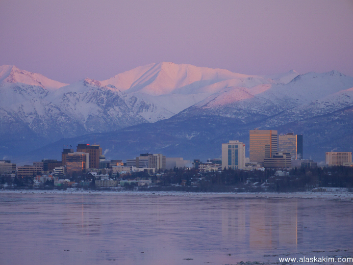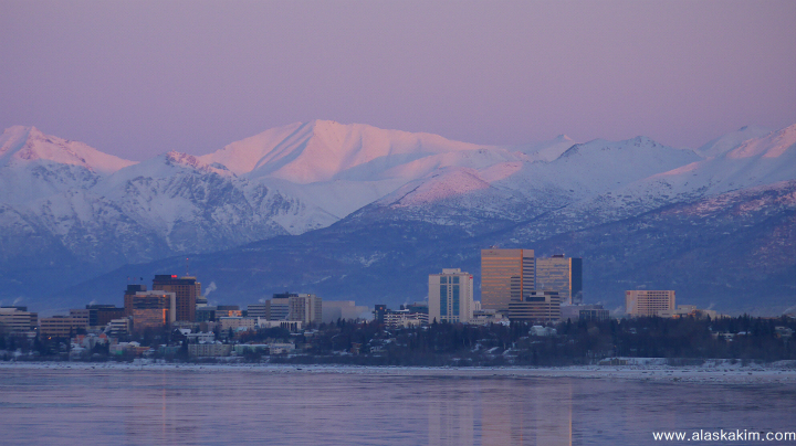 앵커리지 다운타운에도 붉은 노을이 어루만져줍니다.