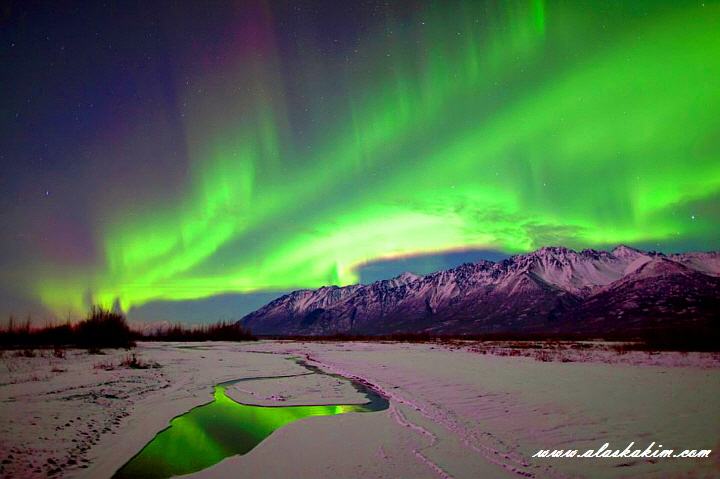 마타누스카 빙하에서 시작되는 오로라가 Palmer라는 도시를