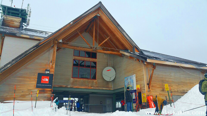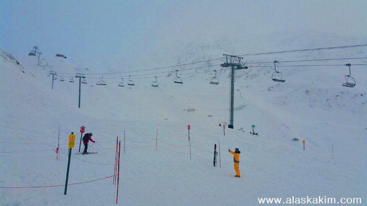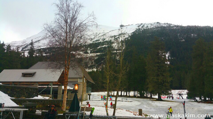 케이블카를 타고 스키장 정상에 올랐습니다.