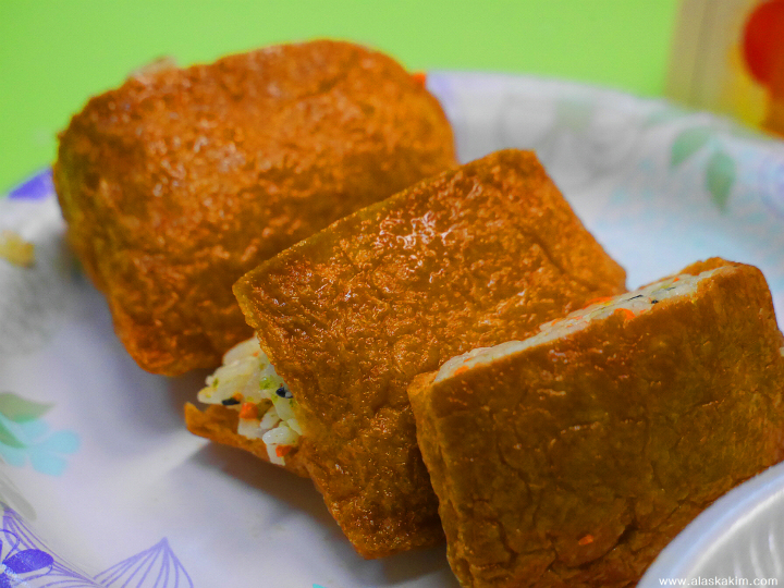 유부 안에는 특별한 야채 볶음밥이 들어있습니다.