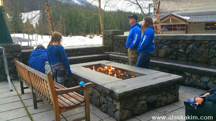 야외에는 늘 꺼지지 않는 가스 모닥불이 타오르고 있어 언제나 몸을 녹일 수