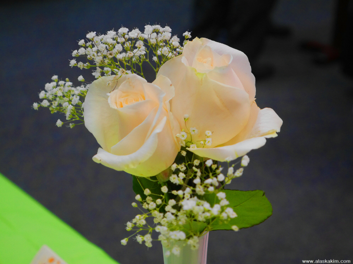 식탁마다 서로 다른 장미들이 곱게 치장을 하고 미소를 건넵니다.