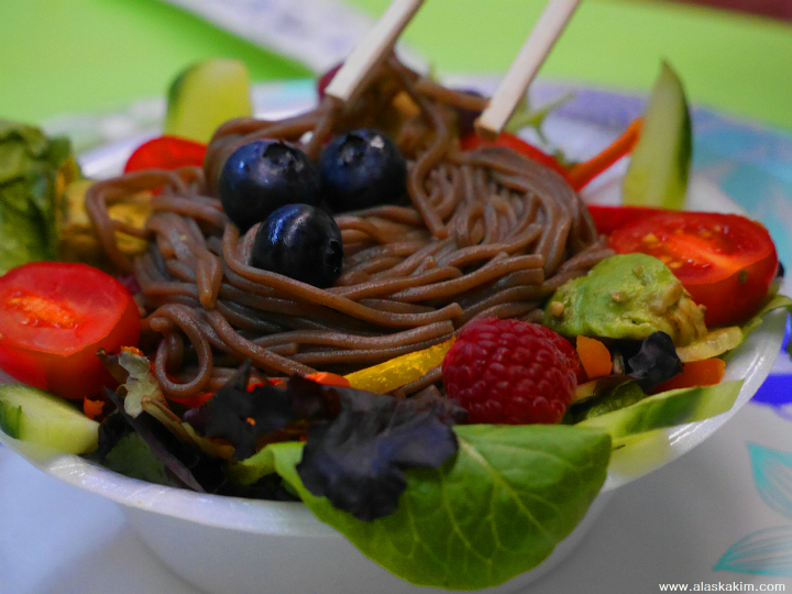 맛깔스러운 메밀국수와 과일과의 만남입니다.