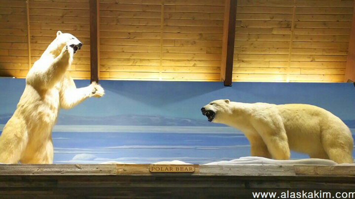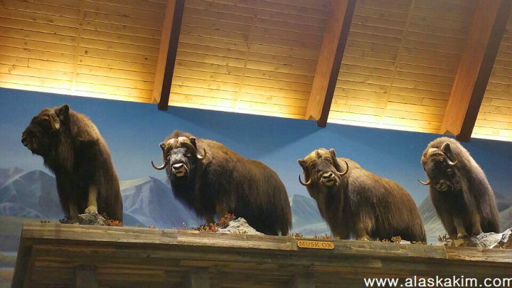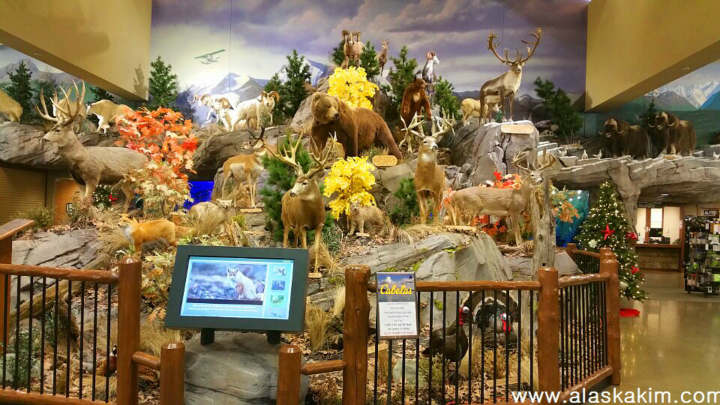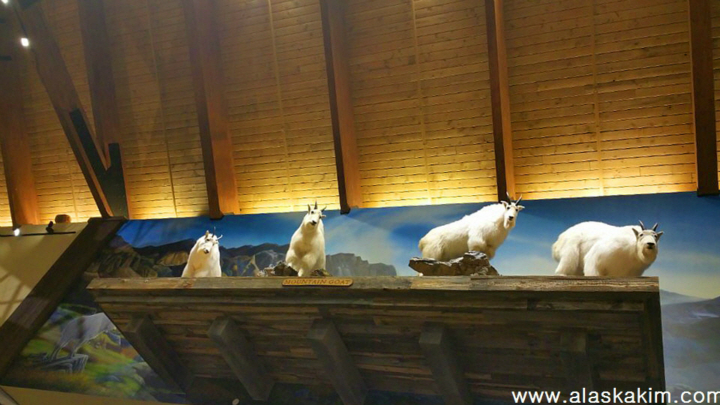 알래스카에 사는 야생동물들을 모두 박제하여 이렇게 전시를 해 놓아