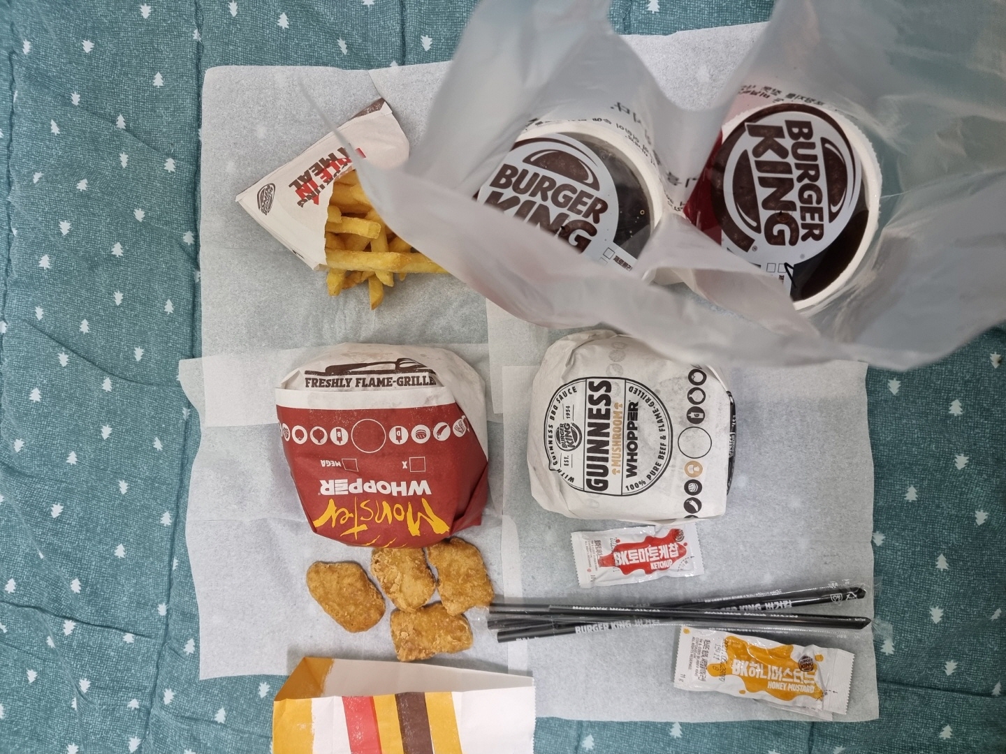 오늘은 특별히 버거킹 햄버거 셋트를 시켜